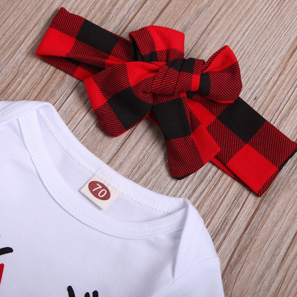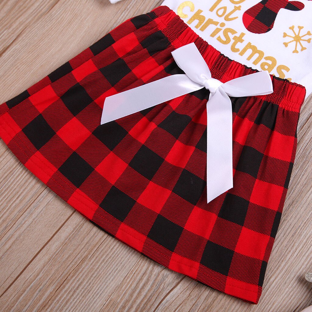 This is a precious 2 piece skirt and onsie set for your baby's First Christmas. It features a deer and red plaid design. Perfect for Family christmas cards, shower gift, dress-up for the holiday's at Grandma's house.